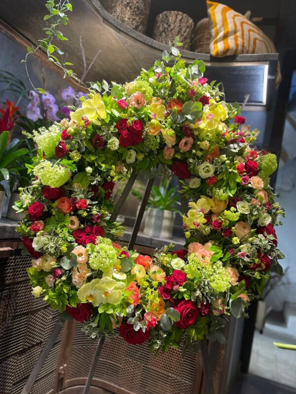 Mixed flower pediment wreath