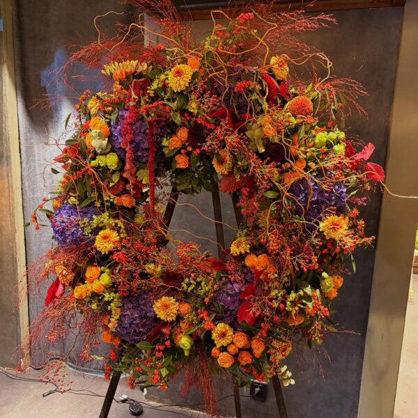 Flat wreath of mixed flowers
